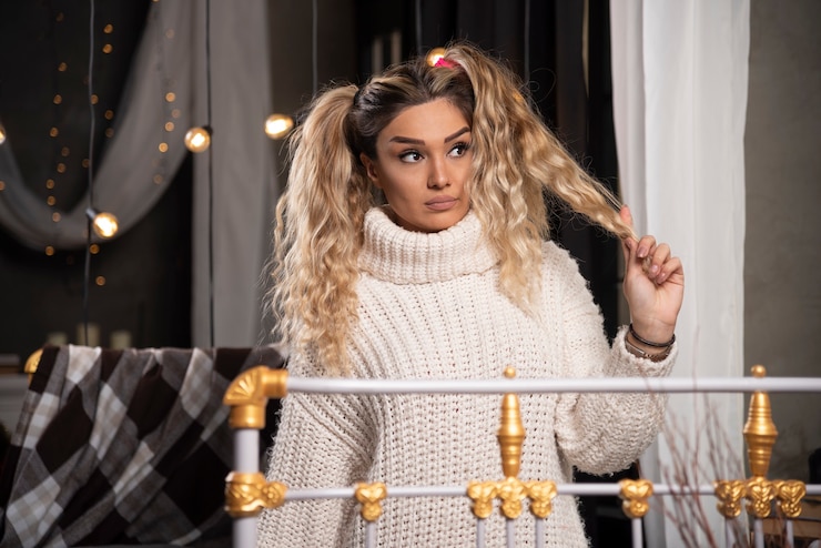 - Создайте объем прическе, вытяните отдельные пряди волос.