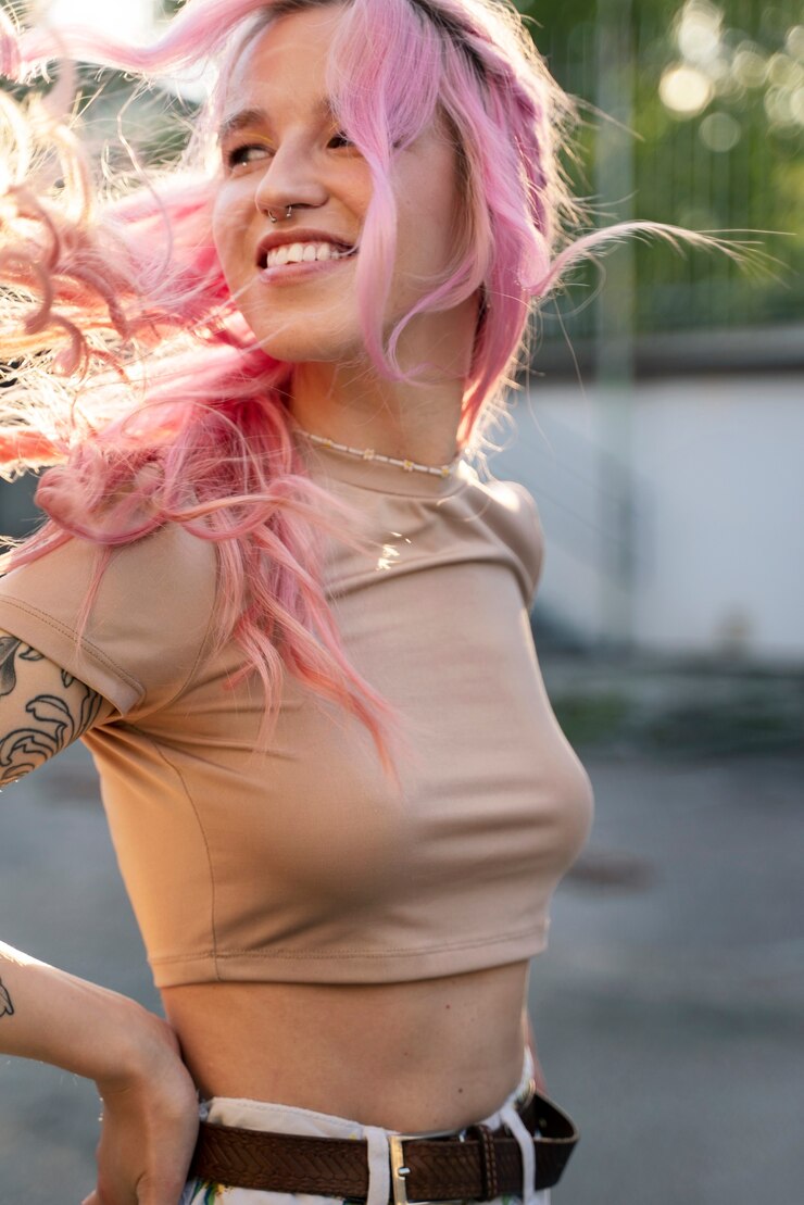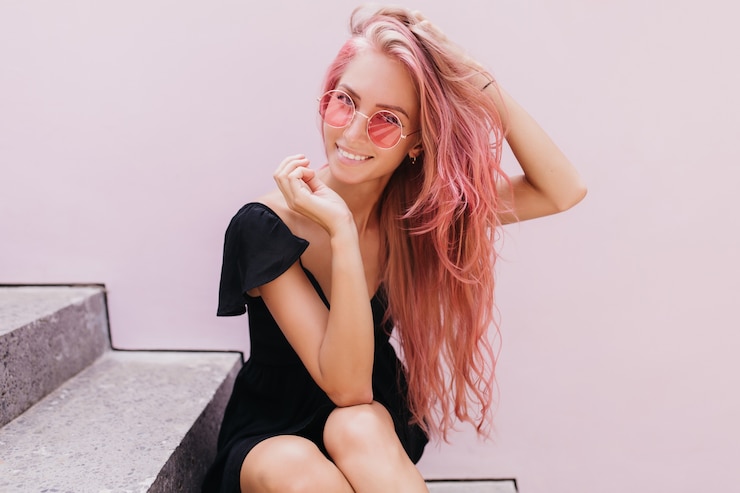 В аромате шампанского все еще улавливаются нежные нотки клубники. Создать насыщенный розовый оттенок непросто, однако, при грамотном подборе цветов, можно добиться ультрамодного окрашивания. Для получения розового блонда требуется светло-русый фон, избегайте чрезмерного осветления волос.