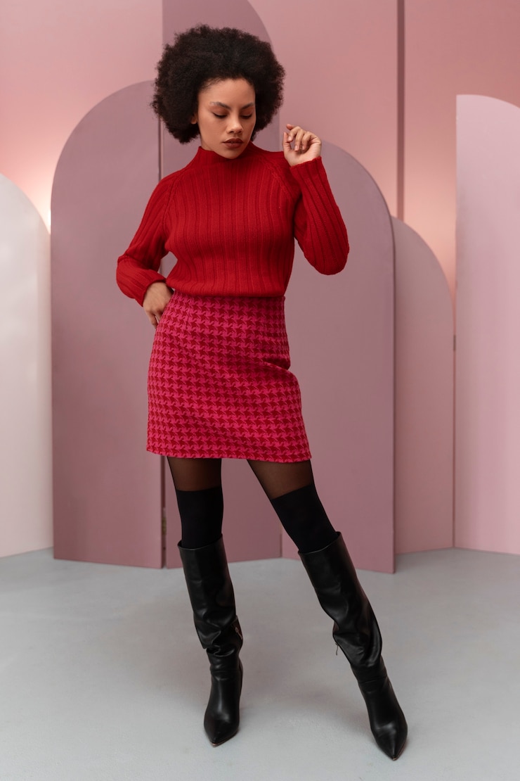 Не стоит удивляться, что ткань юбки легче, чем верх (свитер, свитшот или пиджак), ведь именно это сейчас в тренде, что демонстрирует осенне-зимняя коллекция. Подобные тенденции остаются актуальными.