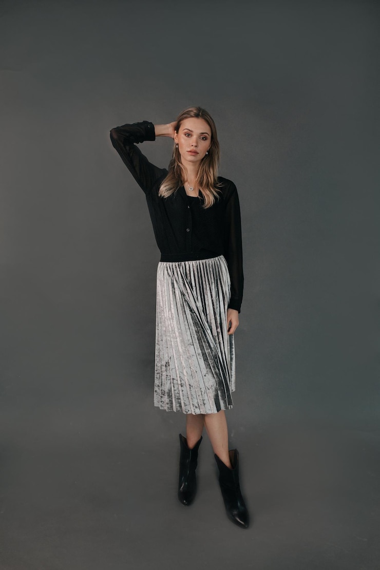 Юбки с плиссировкой черного или серого оттенка отлично дополнят деловой гардероб, а модели насыщенных цветов будут уместны в повседневном стиле. Наиболее выигрышным вариантом будет сочетание юбки яркого цвета с белой верхней частью, такой как белая блузка или футболка.