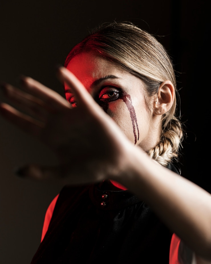 - Кровь – неотъемлемый элемент практически любого хэллоуинского макияжа. Ее можно создать своими руками, используя доступные ингредиенты, такие как глицерин и алый краситель.