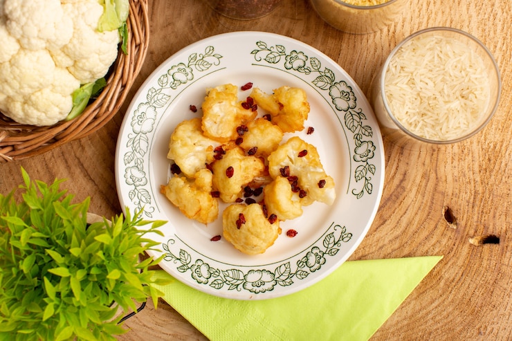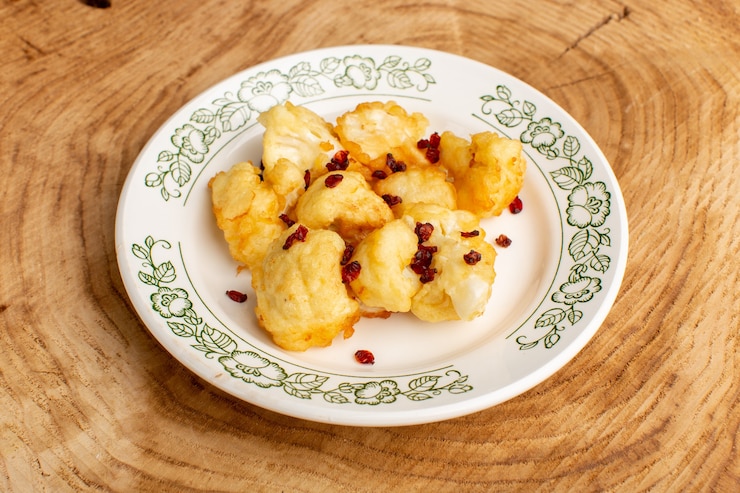 - Полученные соцветия обмакивают в кляр и обжаривают с обеих сторон. Перед подачей блюдо украшают свежей зеленью. Оно может быть использовано как основное блюдо или в качестве гарнира.