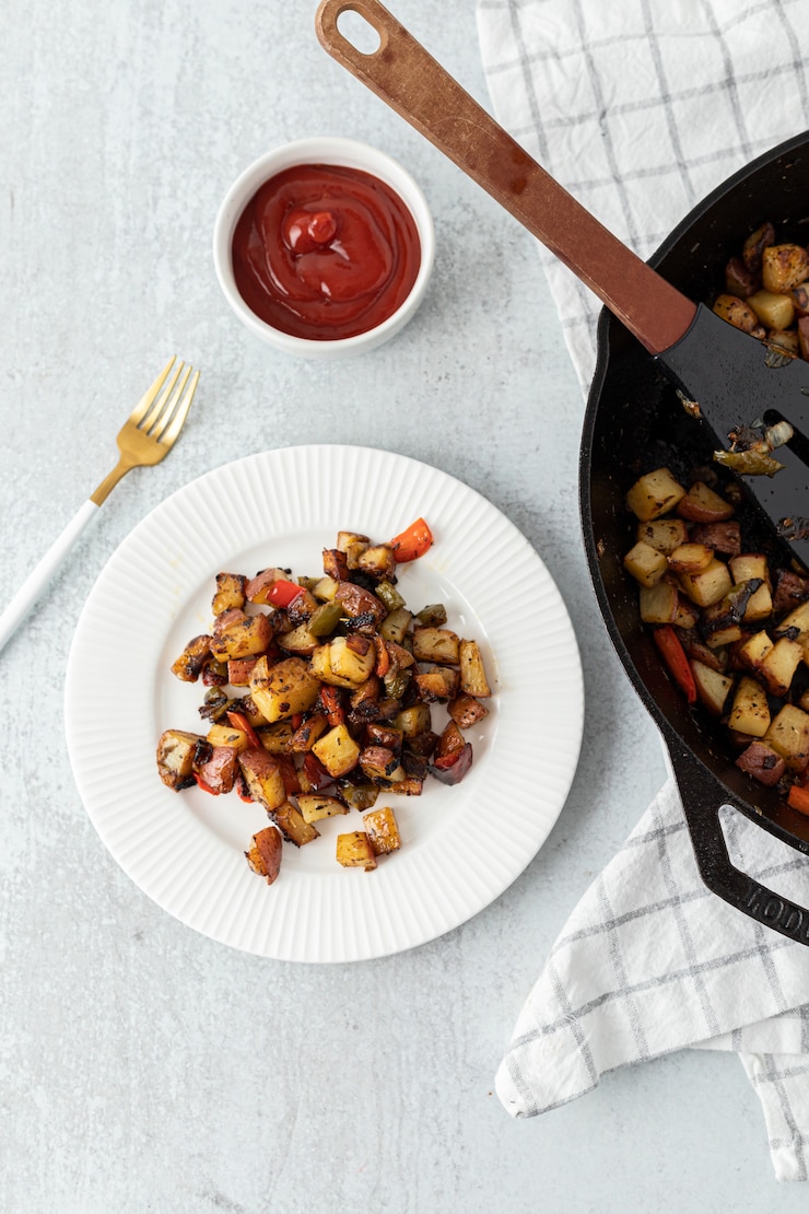 - Благодаря предварительной тепловой обработке сокращается время приготовления. В результате овощ впитывает меньшее количество масла, что делает блюдо значительно менее калорийным по сравнению с жаркой неочищенной капусты.