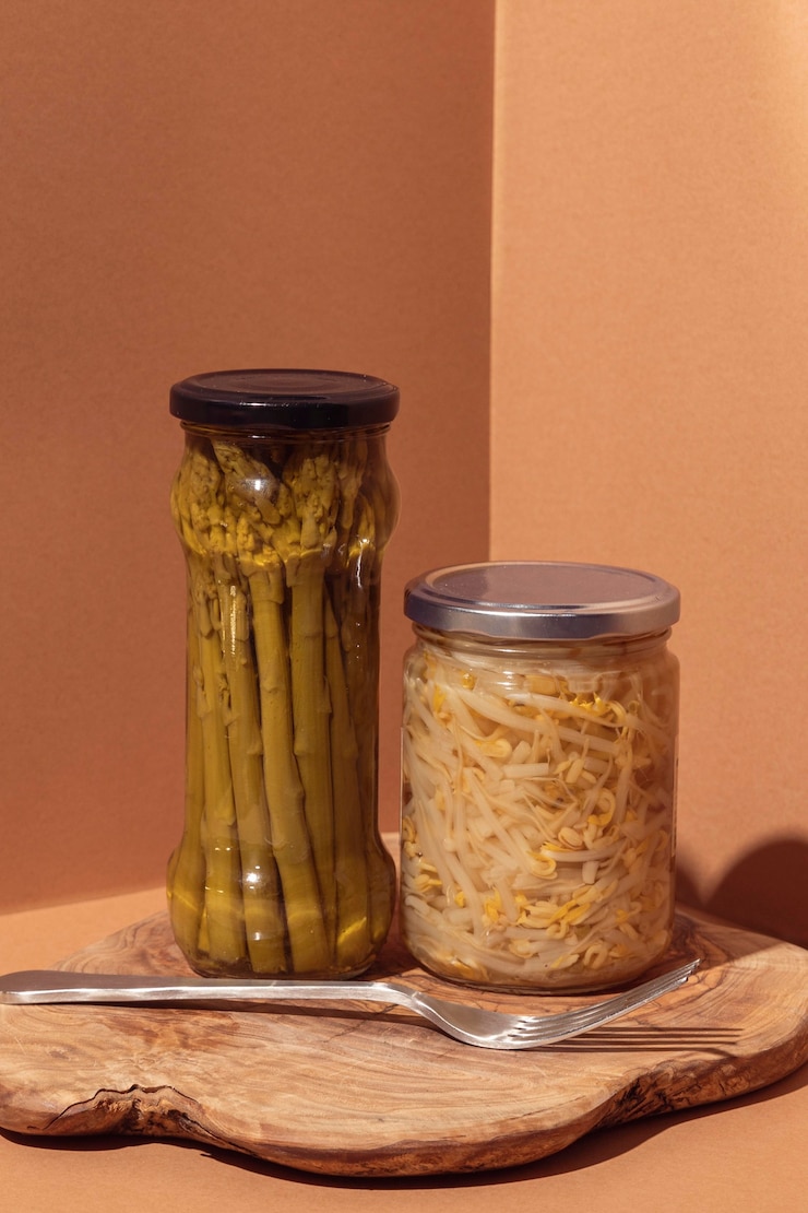 - Овощную смесь помещают в стерильную стеклянную емкость.