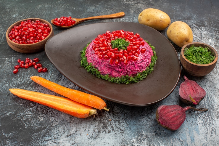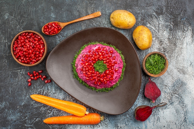 Даже самый привычный салат, например, селедка под шубой, может выглядеть свежо и интересно благодаря творческому подходу.