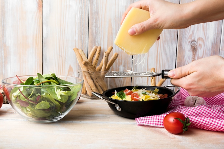 - Твердый сыр натираем на мелкой терке, выбирая сорт на свой вкус.