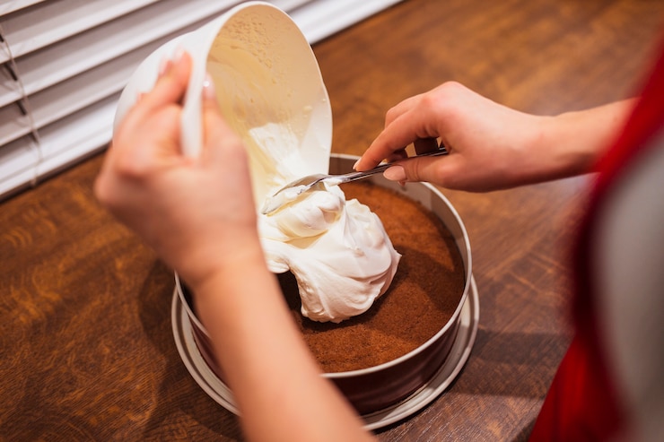 - Необходимо распределить продукт равномерно по всей поверхности. В отдельной емкости смешайте какао, сахарную пудру и кукурузный крахмал, используя одинаковое количество каждого ингредиента.
