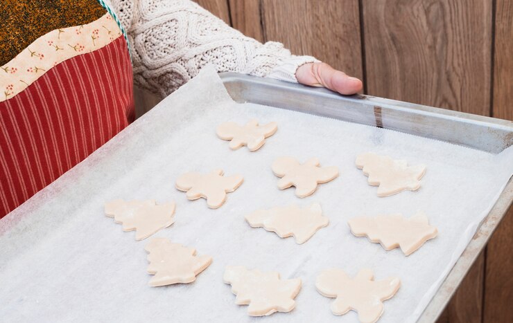 - Десерт готов к употреблению и должен легко отделяться от пекарской бумаги. Чтобы избежать прилипания, посыпьте верхнюю часть смесью сахарной пудры и кукурузного крахмала в равных пропорциях. При необходимости разрежьте десерт чистыми ножницами.