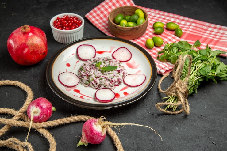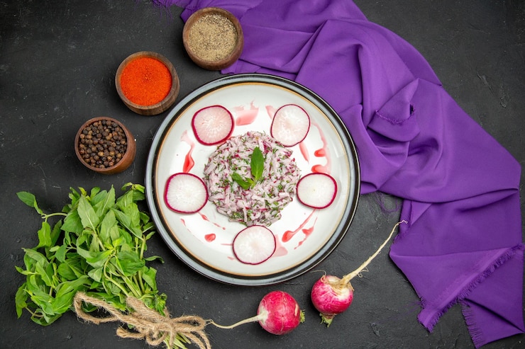 - Из этих заготовок создают маленьких крысят, для чего из редиса, но можно и из плотного сыра, вырезают ушки. Крабовые палочки нарезают тонкими полосками и используют для создания хвостиков грызунам, а горошины черного перца применяют для глаз и носиков. Рядом с крысятами размещают несколько кусочков сыра и салат-закуска готов.