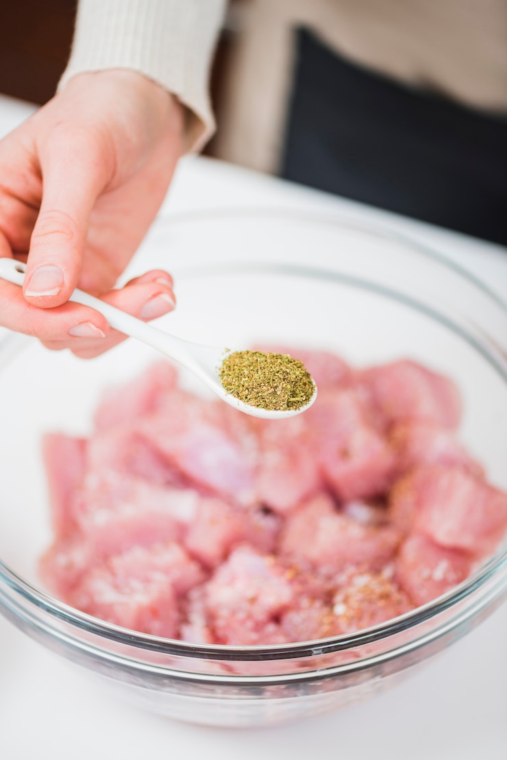 - Заливаем мясо приготовленным маринадом, тщательно перемешиваем и выдерживаем его в течение 20-30 минут.