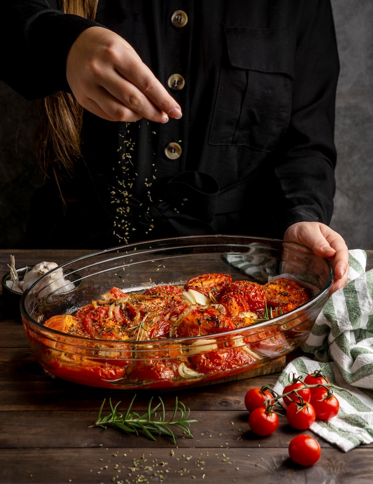 - Овощи переложите в большую миску, добавьте к ним сушеные травы, такие как петрушка, укроп, базилик и тархун.