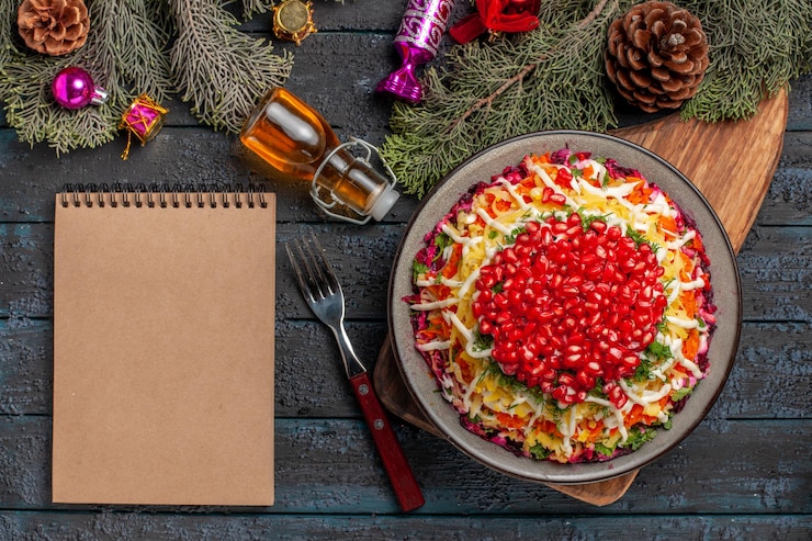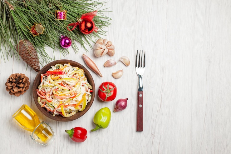 Рождественское меню 2020 года может включать самые разные блюда, однако салаты традиционно присутствуют на праздничном столе. Поэтому мы предлагаем рецепт с фотографией, который позволит вам легко и вкусно приготовить закуску для рождественского стола. Салат «Рождественский венок» получается очень вкусным и эффектным, и он наверняка придется по вкусу тем, кто любит готовить закуски без майонеза.