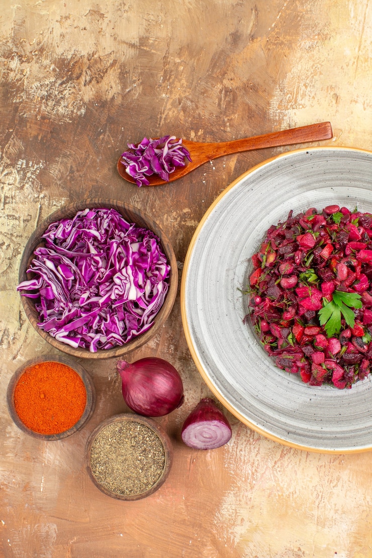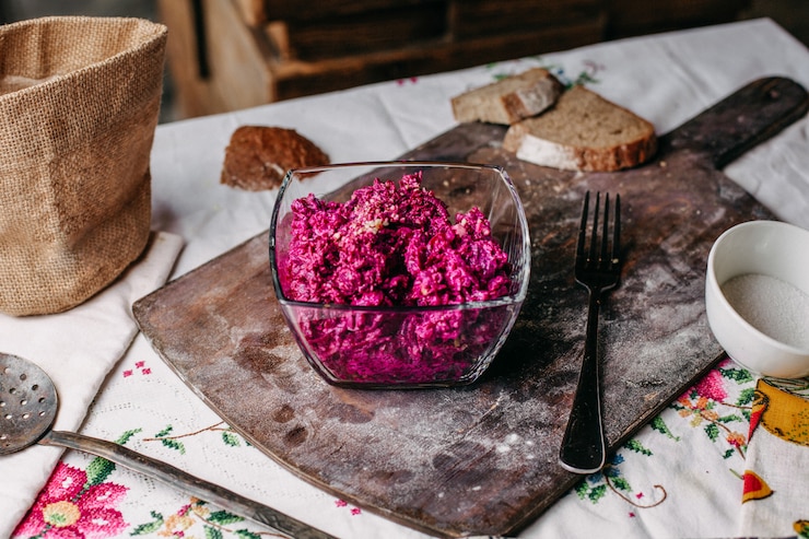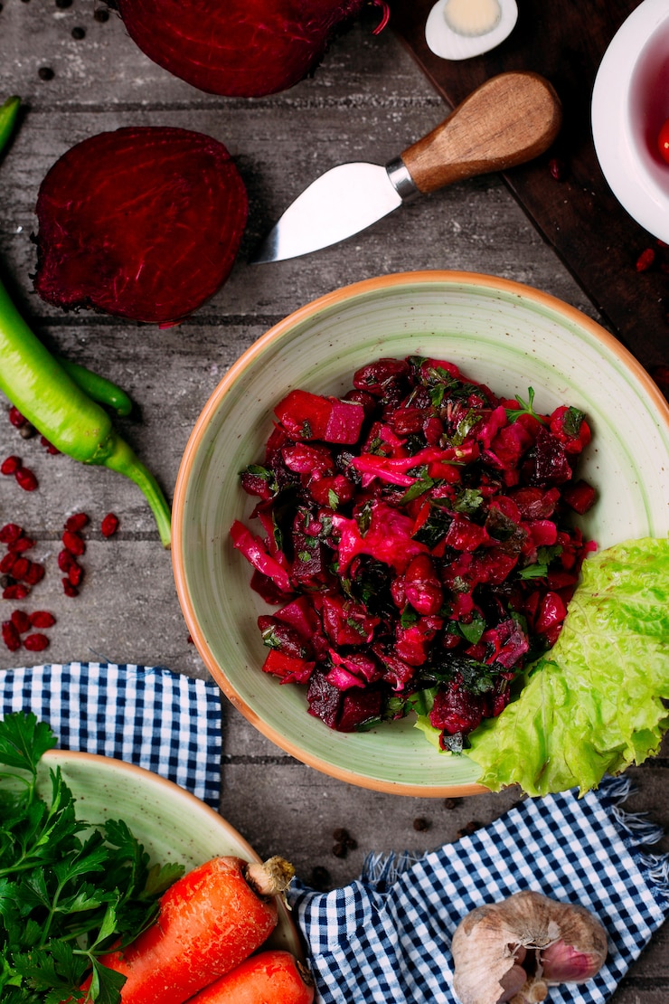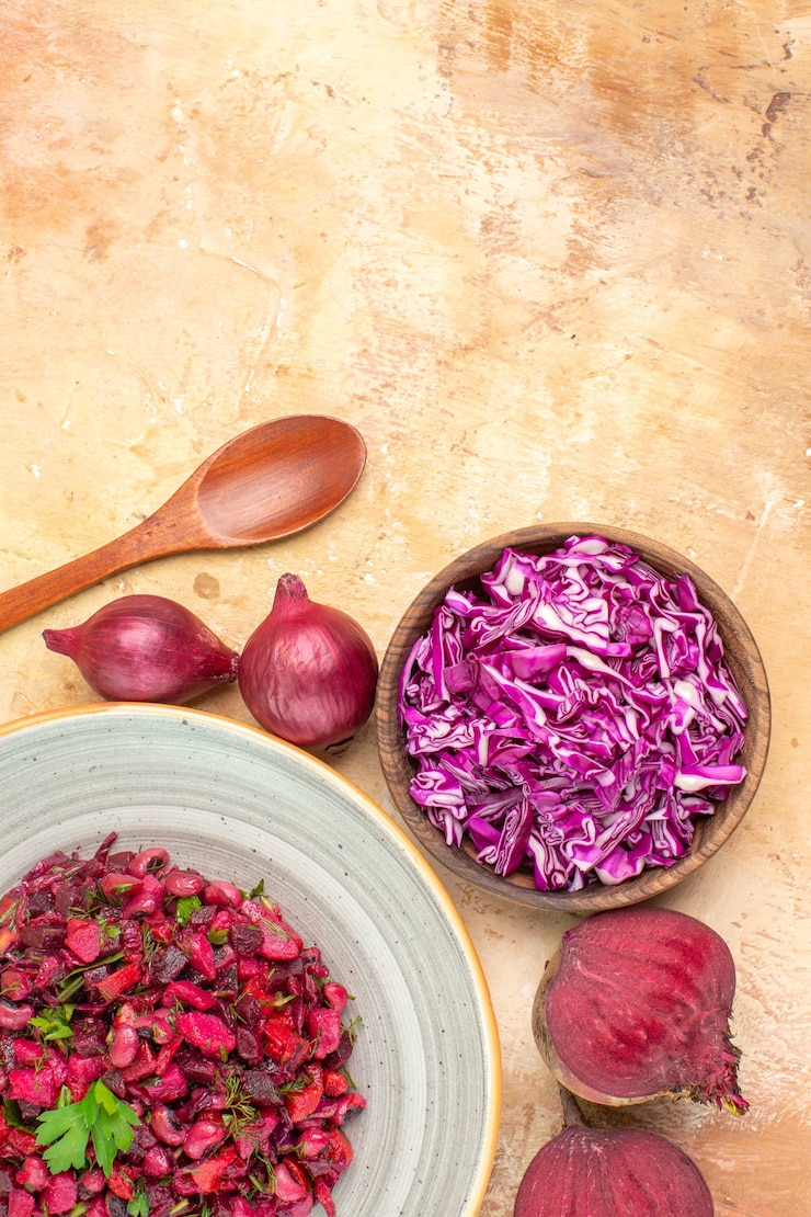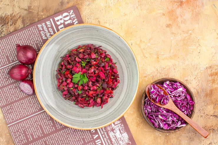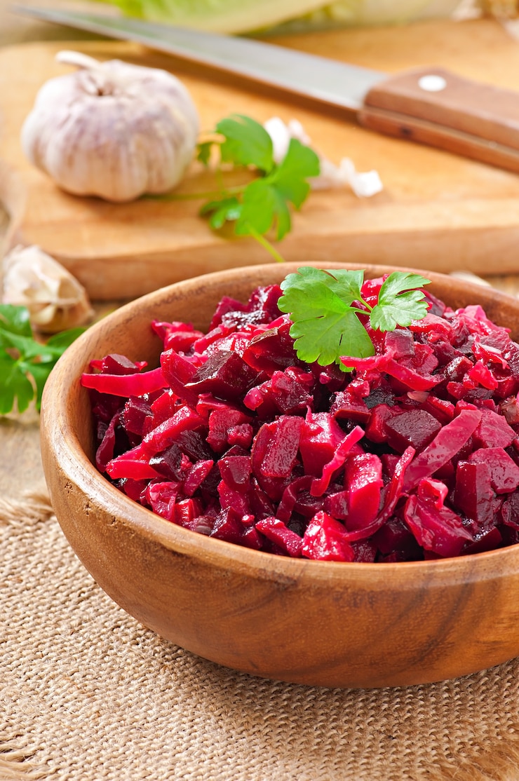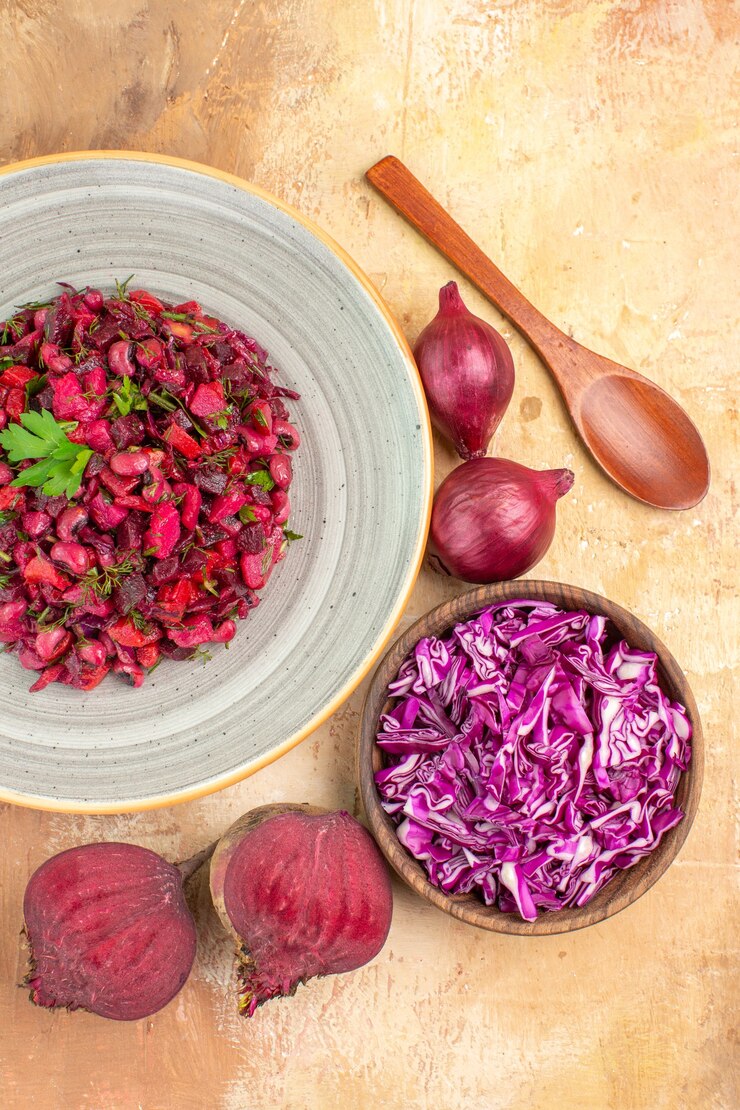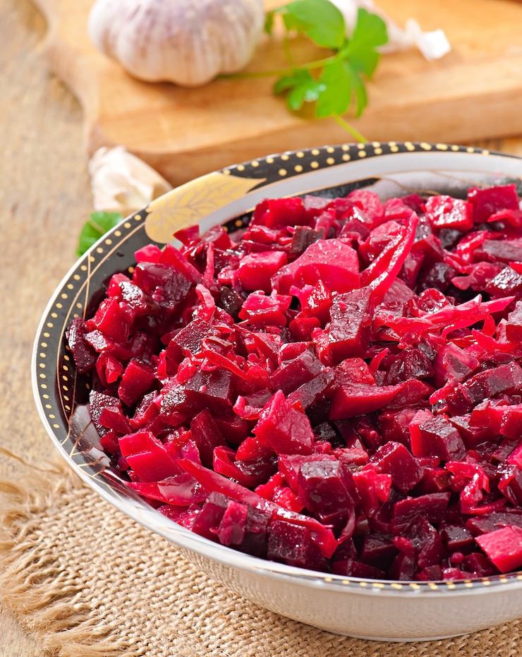 Винегрет – известное русское блюдо. В настоящее время существует множество рецептов этого салата — с квашеной капустой, солеными огурцами и с использованием особого ингредиента, который можно найти на кухне у каждой хозяйки.