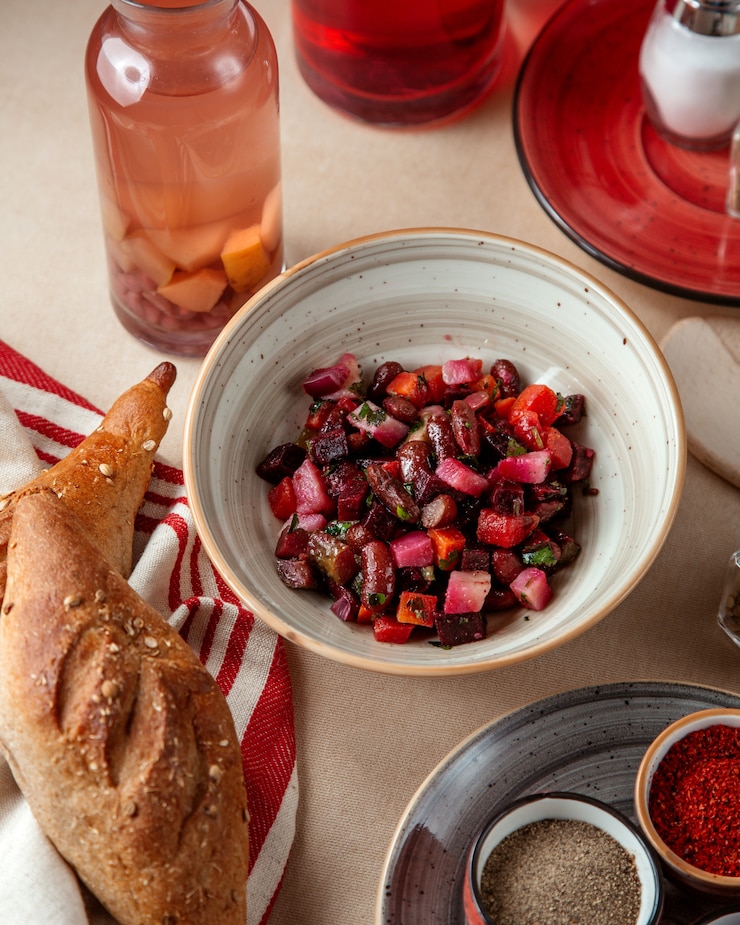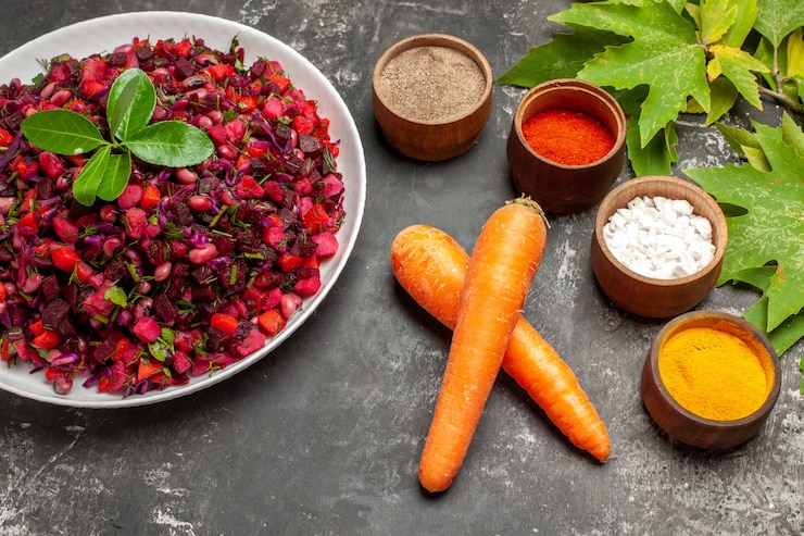 Традиционный рецепт винегрета включает в себя овощи, квашеную капусту и зеленый горошек. Однако, чтобы придать блюду новые оттенки вкуса, можно добавить маслины, грибы, соленую сельдь или даже мясо. Для пикантности можно использовать горчицу или чеснок.