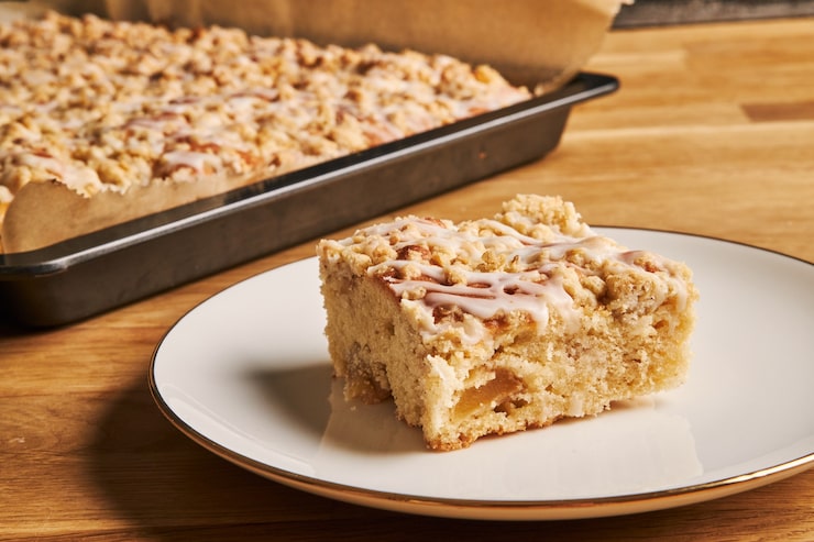 - Когда наступит нужный момент, извлекаем десерт из холодильника, снимаем пленку, покрываем кремом со всех сторон и посыпаем крошкой.
