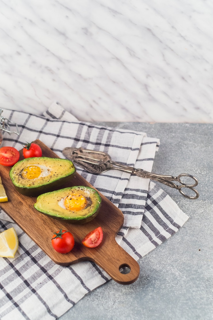 - Разделите белок и желток. Добавьте белковый компонент в середину авокадо.