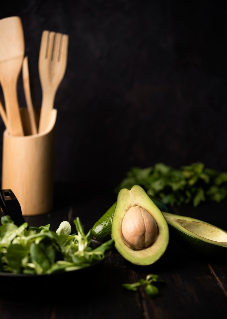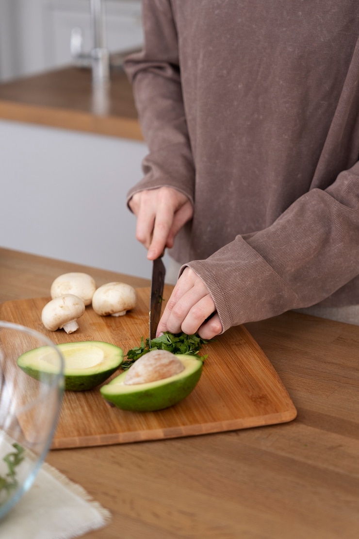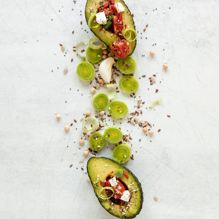 - Авокадо следует разрезать на две половинки и извлечь косточку.
