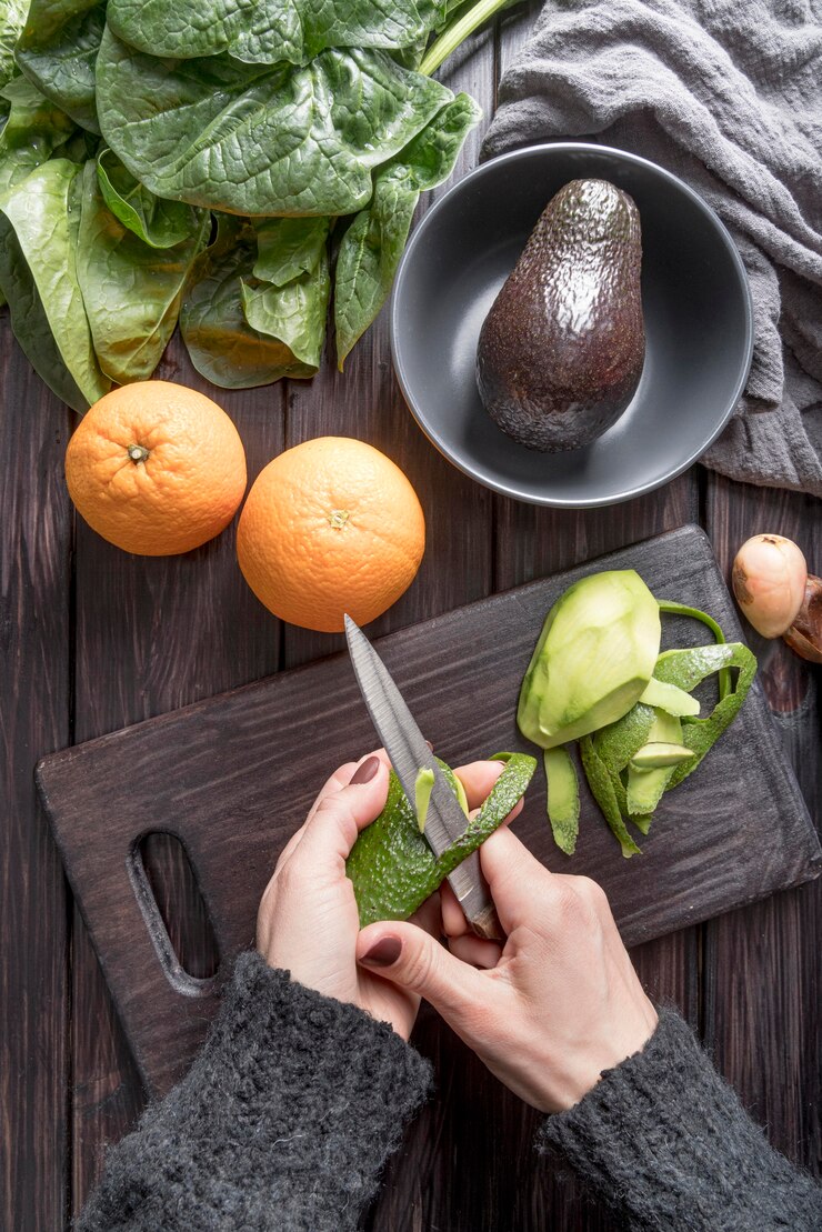 - Разрежьте авокадо пополам. Осторожно извлеките косточку. С помощью ложки достаньте мякоть. Важно делать это аккуратно, чтобы не повредить кожицу.