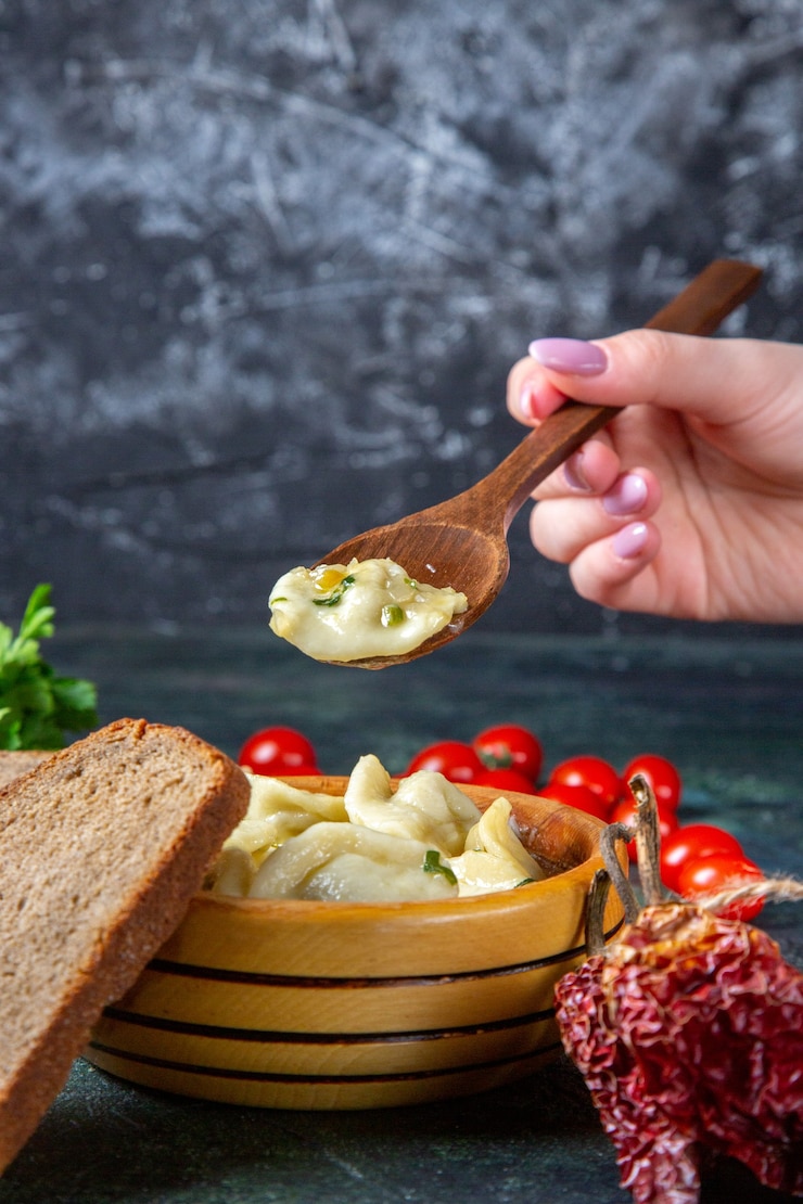 - Каждый кусочек теста слегка обваливают в муке, после чего формируют вареники, внешне похожие на крупные галушки.
