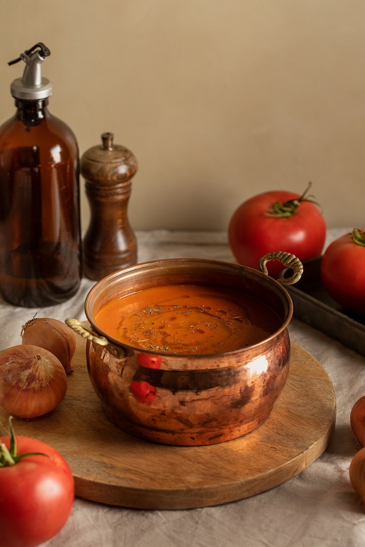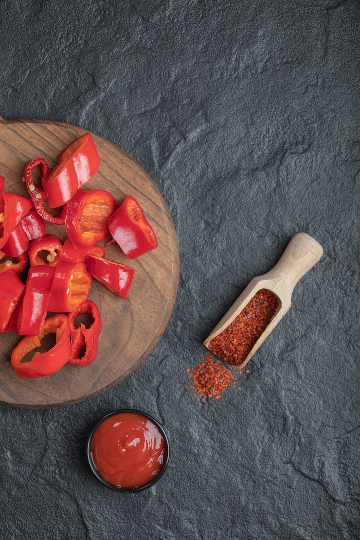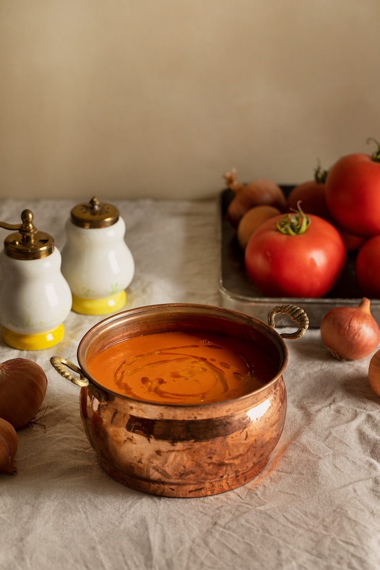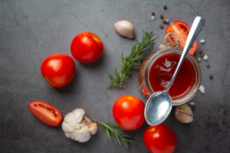 - В кипящий томатный соус добавляют масло и перец, после чего соус снова доводят до кипения.