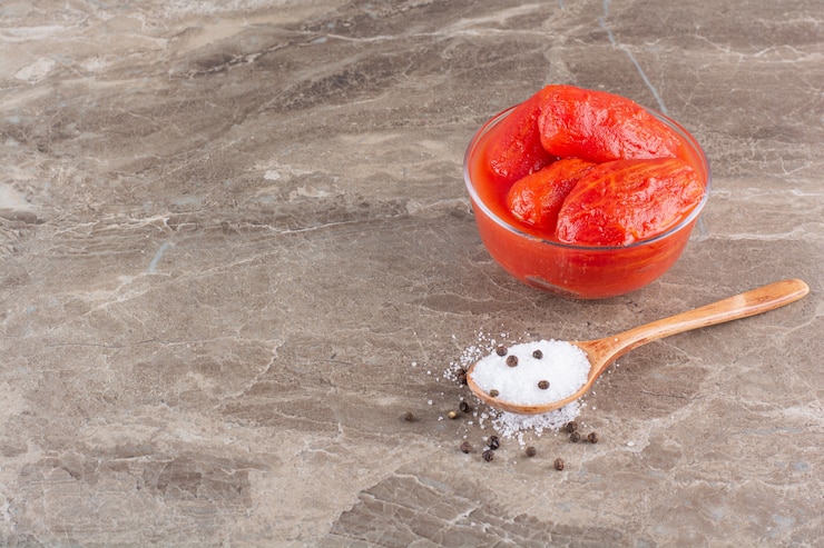 - В измельченные томаты добавляем сахар и соль, тщательно перемешиваем, затем ставим на огонь и доводим до кипения.