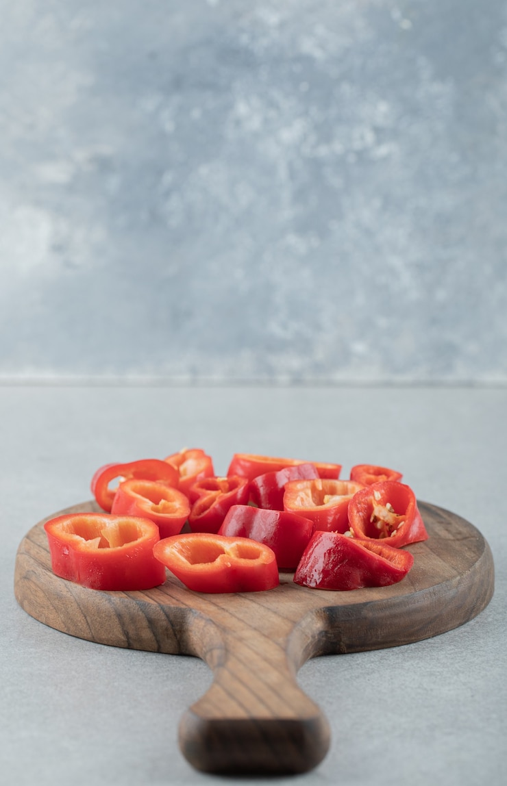 - Очищенные от семян плоды сладкого перца в это время нарезают дольками.
