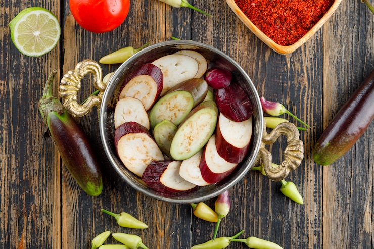 - Баклажаны нарезают небольшими брусочками и помещают в рассол.