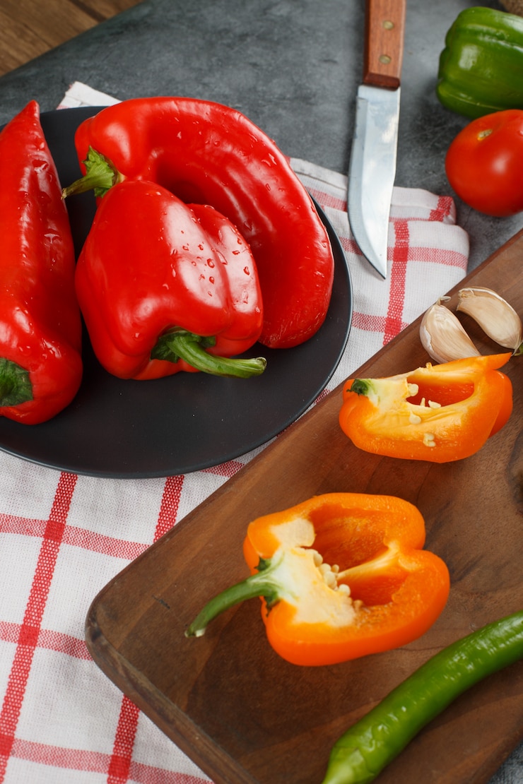 - Сладкий перец помыть и разрезать пополам, затем удалить внутреннюю часть с семенами. Для лечо предпочтительнее использовать красные плоды, однако для более красочной закуски можно взять овощи разных цветов.