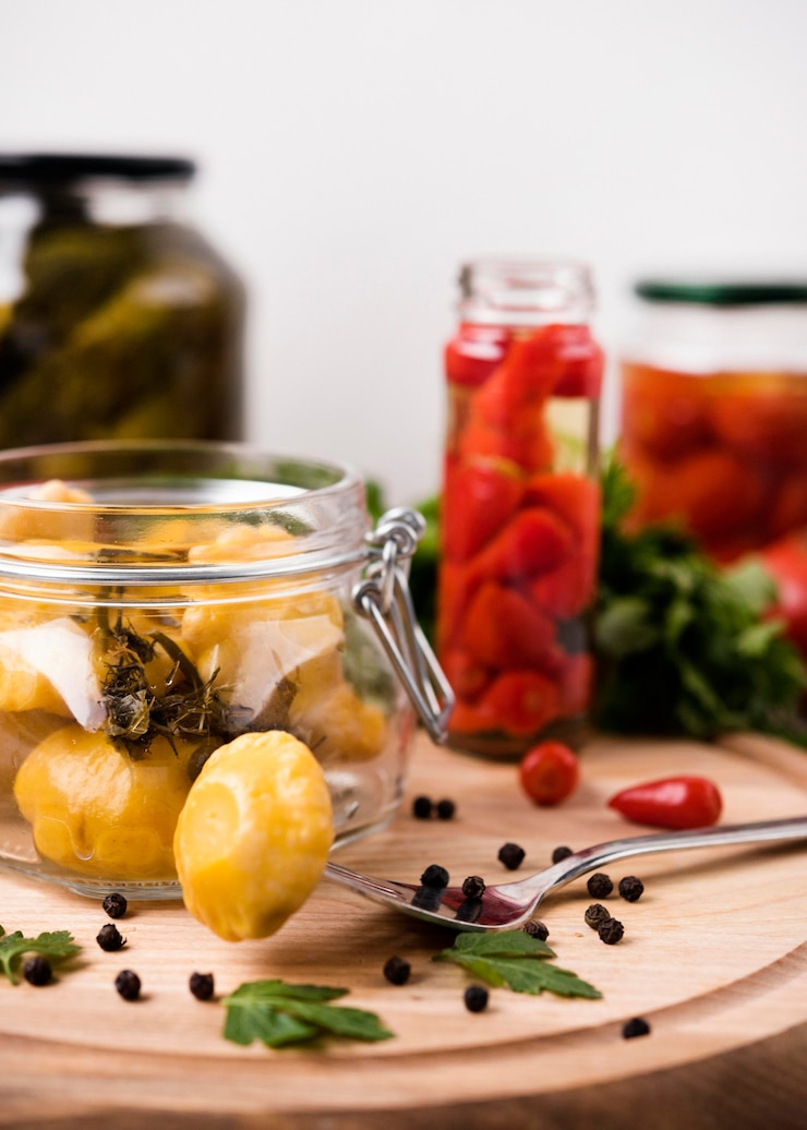 - Готовую горячую закуску распределяем по стерильным баночкам и закрываем простерилизованными крышками.