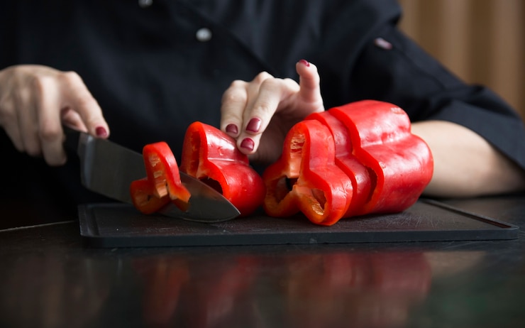 - Овощи нарезаются болгарским ножом на произвольные фрагменты, будь то полоски, дольки или квадраты.