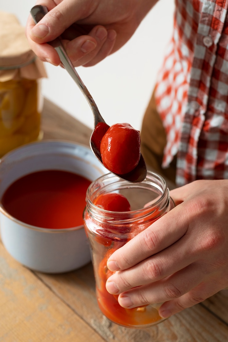 - Приготовленное лечо распределяют по подготовленным банкам и герметично закрывают крышками.