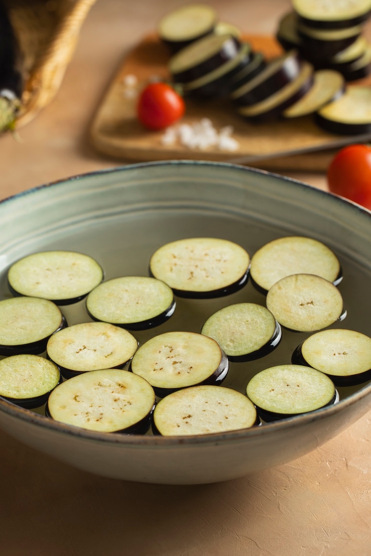 - Баклажаны следует промыть под проточной водой, после чего необходимо удалить излишки соли и жидкости.