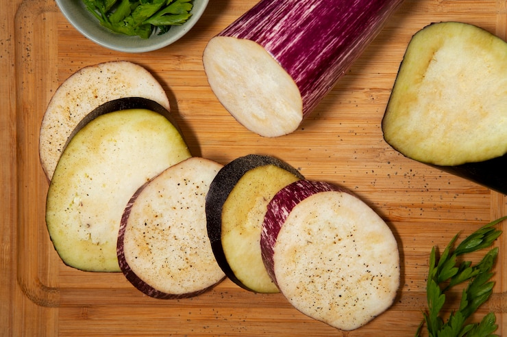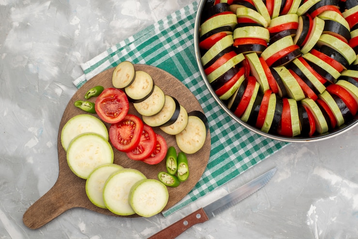 - Баклажаны нарезаем и готовим салат, потребуется еще 15 минут.