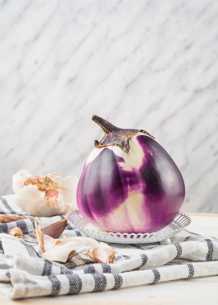 - В каждую простерилизованную баночку добавляют измельченный чеснок и несколько горошин перца, после чего наполняют баклажанами.