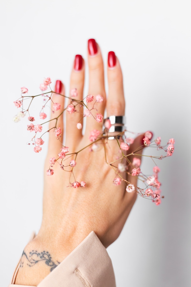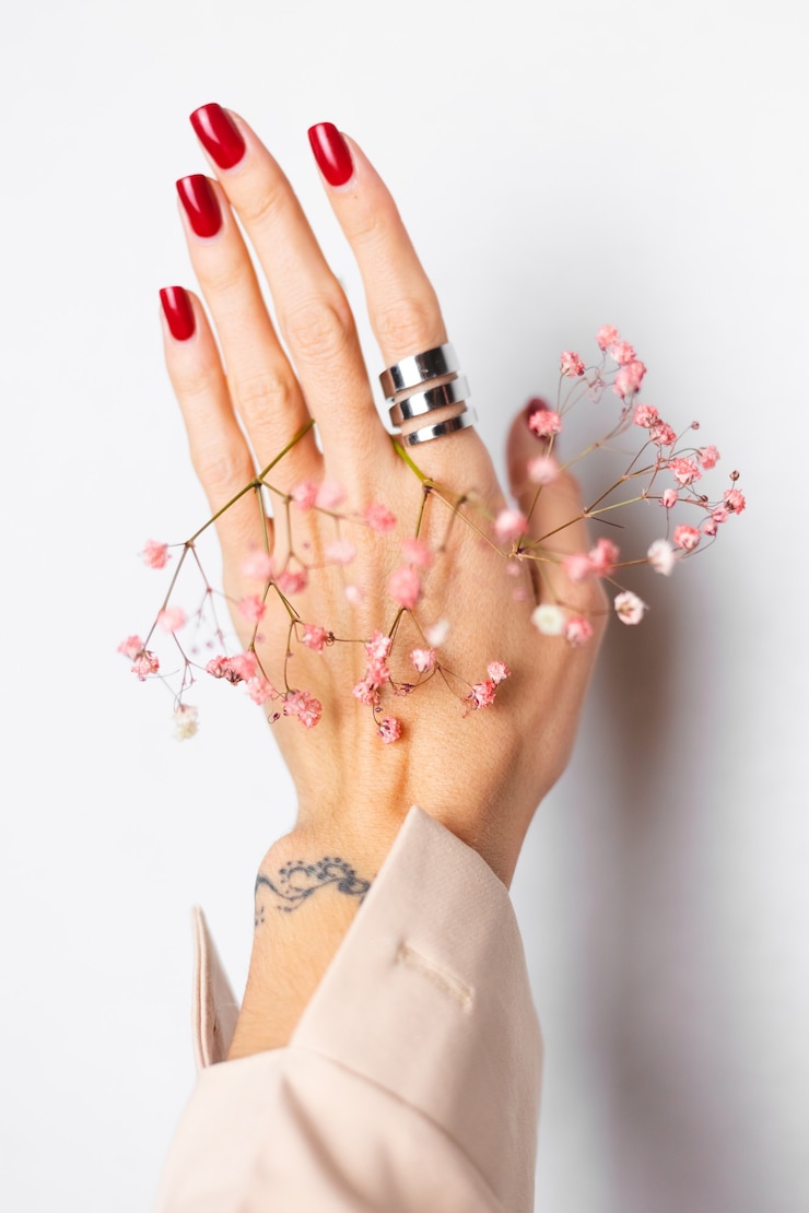 Среди самых привлекательных идей весеннего декора ногтей — выделительный дизайн лунки.