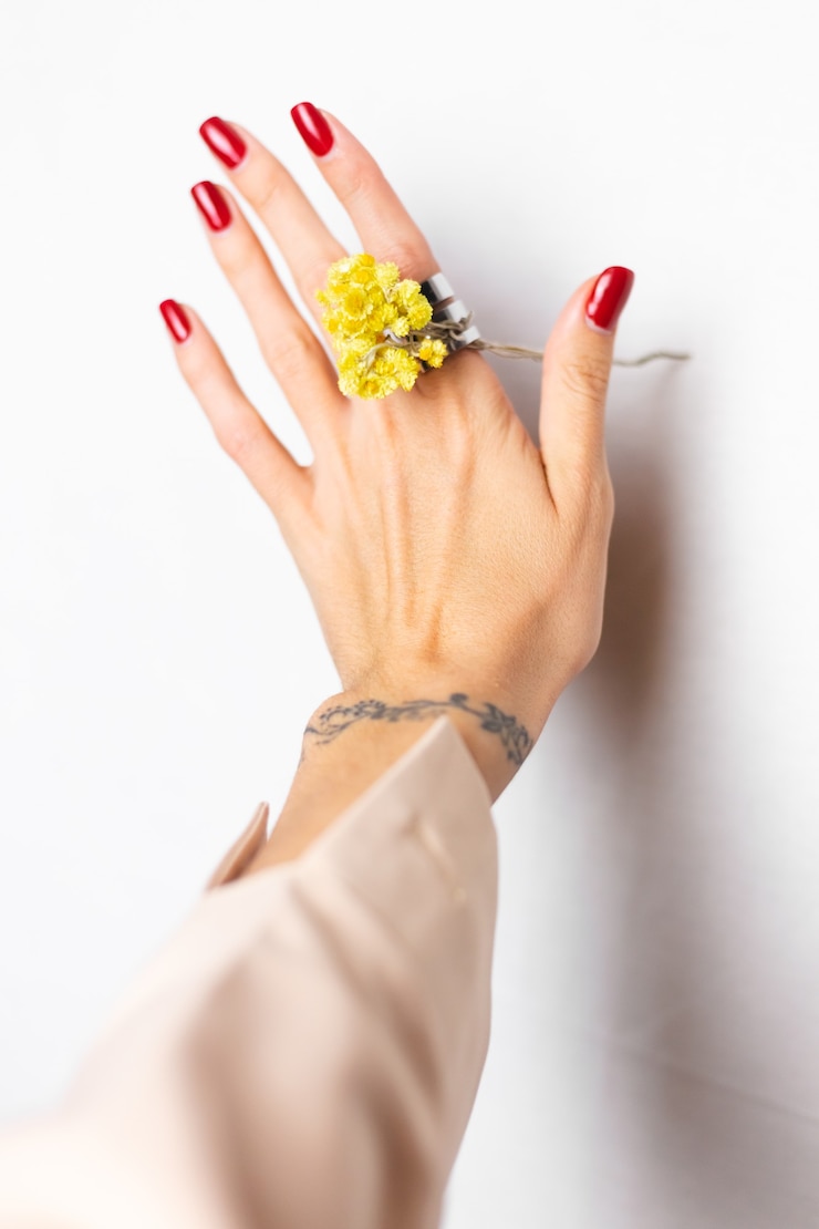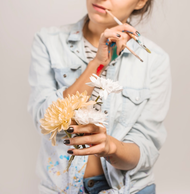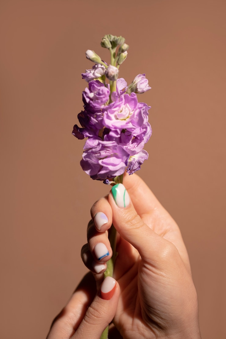 - В тренде как реалистичные цветы с деталями, так и контурная прорисовка. Бутоны весенних растений — сакуры, ромашки, одуванчиков, тюльпанов, пионов, сирени, лаванды и мимозы — будут актуальными. Для тонких изображений мастера советуют стемпинг. Также подойдут рельефные лепестки в технике sweet bloom.