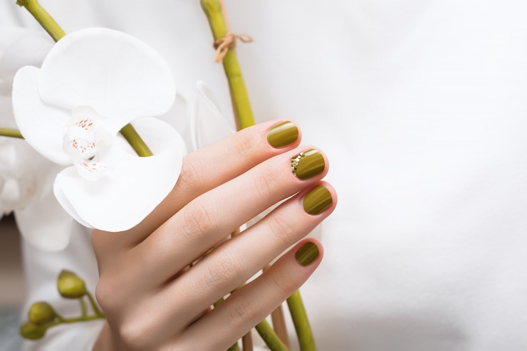 - Грушевый цвет более яркий и веселый, чем оливковый, красиво смотрится на ногтях в матовом покрытии.