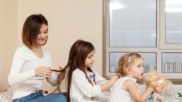 Следуя всем этапам, мамы смогут сами уложить волосы своей дочери: