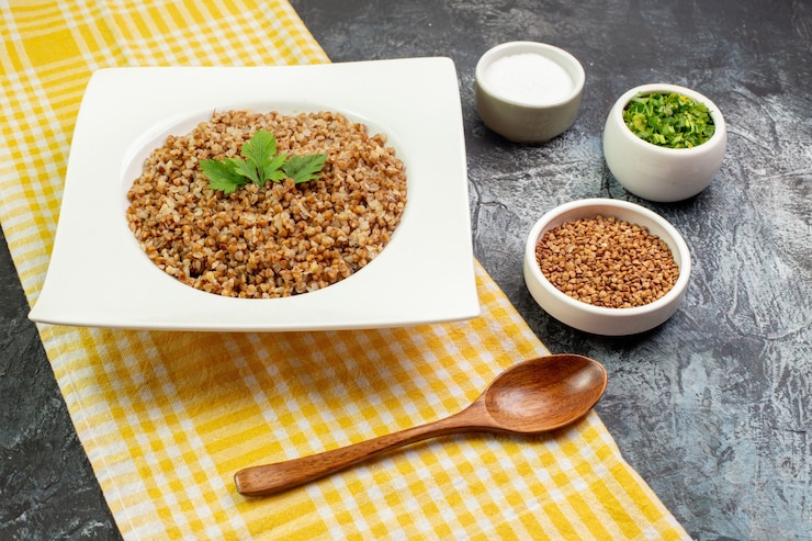 - Заливаем в емкость кипящую воду, чтобы она перекрывала гречневую крупу.