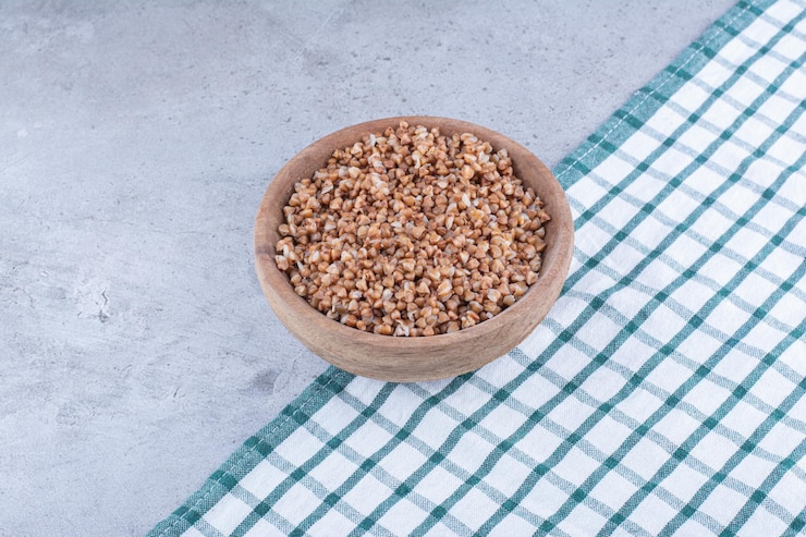 - Тщательно промываем гречневую крупу и заливаем её кипятком.