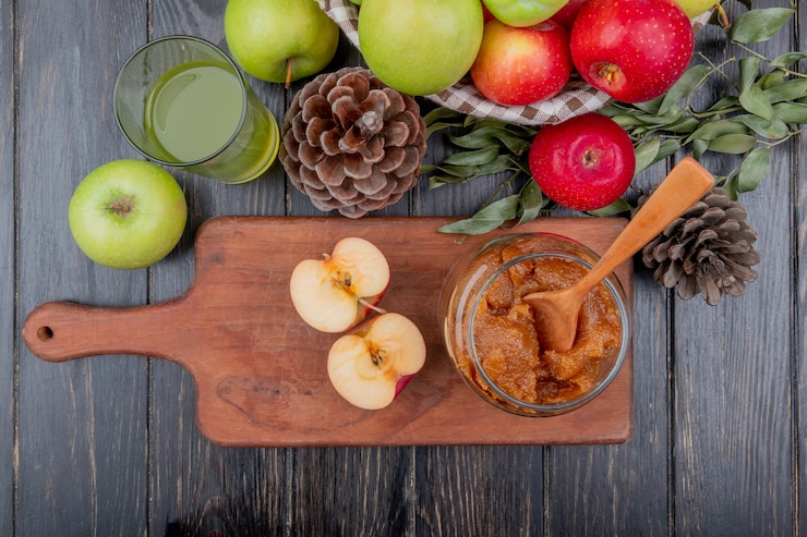 - Яблоки и сахар, смешанные в соотношении 1:1 (или меньшее количество сахара, если фрукты достаточно сладкие).