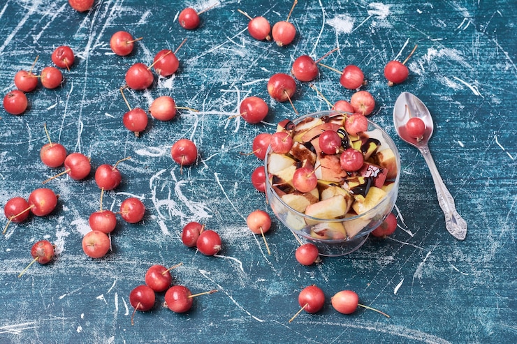 - Не обработанные яблочные ломтики обладают повышенной ломкостью и легко разрушаются даже при аккуратном перемешивании. Контейнер с фруктовой нарезкой, содержащей сок, устанавливают на рассекатель над огнем, избегая перемешивания.