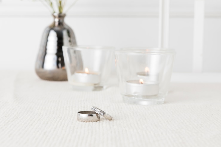 - Серебро – ещё один востребованный металл среди пар, готовящихся к свадьбе. Считается, что украшения из серебра обладают целебными свойствами. По своим характеристикам они не менее долговечны, чем изделия из золота, однако стоят значительно меньше. Кольцо, изделие, отличающееся оригинальным оформлением или инкрустацией драгоценными камнями, может стоить в три-пять раз меньше, чем аналогичное изделие из золота.