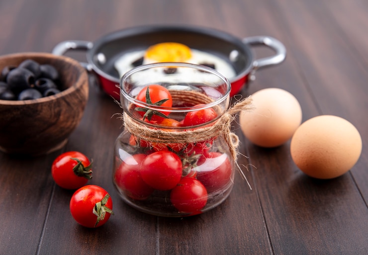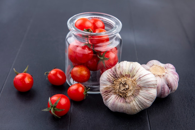 - Помидоры необходимо перебрать. Для консервирования подходят исключительно цельные, неповрежденные плоды. Разместите овощи в продезинфицированные банки.