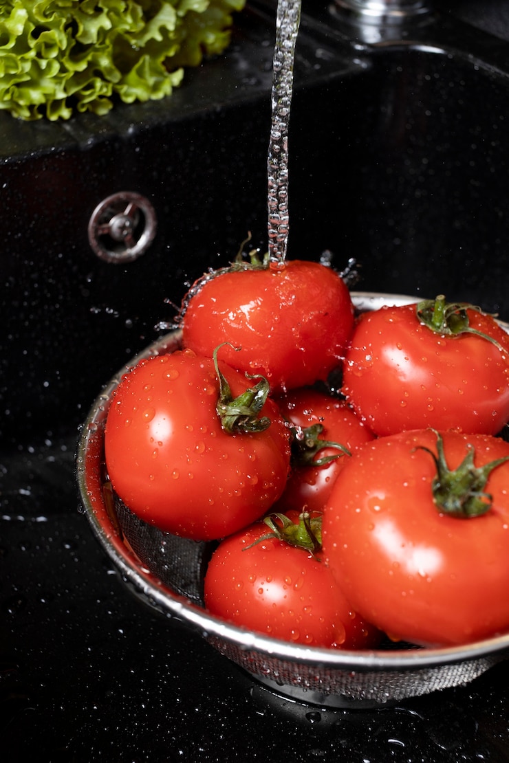 - Помидоры необходимо перебрать. Для консервирования подходят только целые, неповрежденные плоды. В области места прикрепления плодоножки до середины каждого помидора следует сделать небольшое отверстие зубочисткой. Кожица при этом не будет повреждена, а сам плод быстрее просолится. Так следует поступить со всеми томатами.