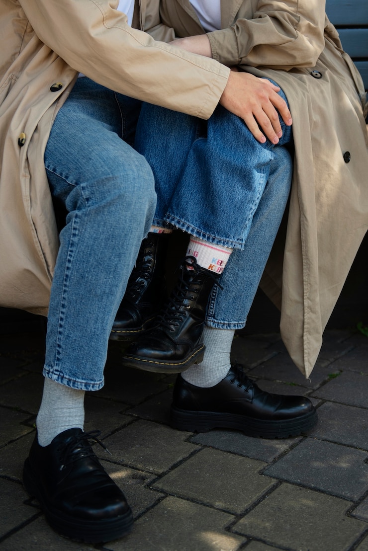- ботинки на тракторной подошве и свободного кроя короткая куртка;