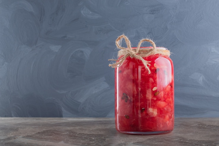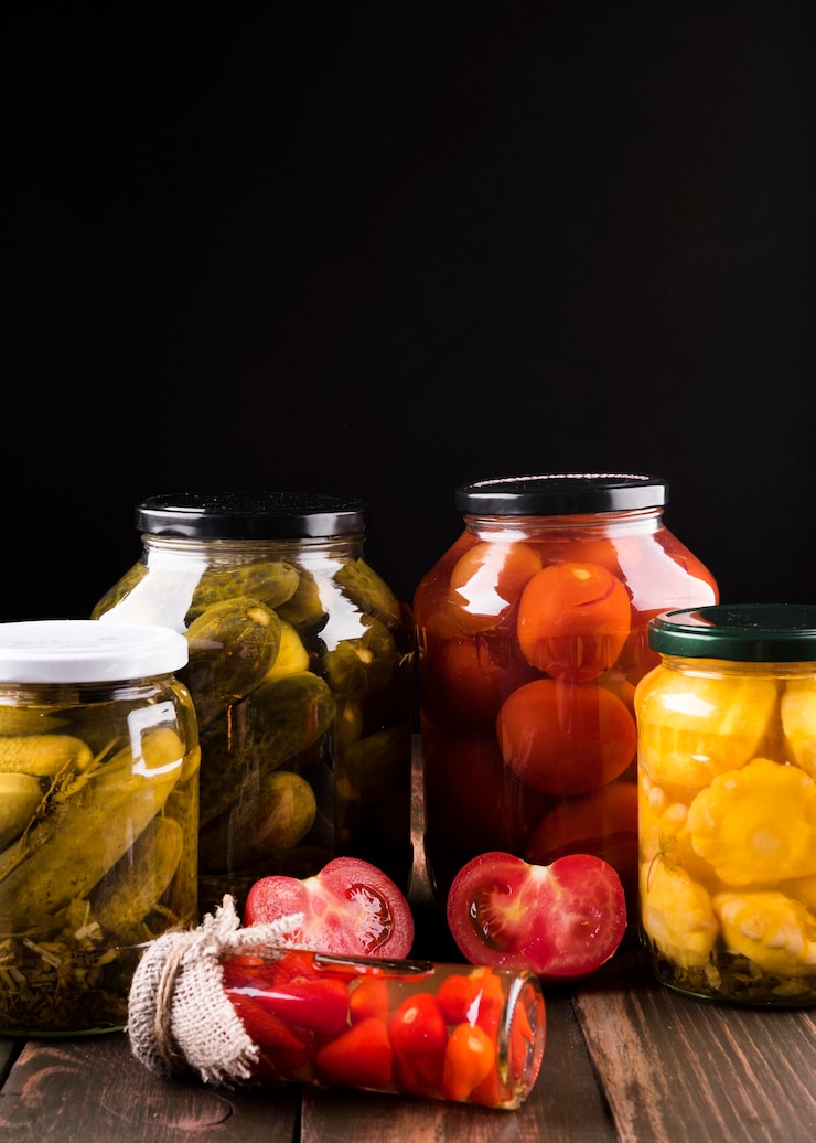 Соленья из сладких томатов в литровой таре с пряным рассолом.
