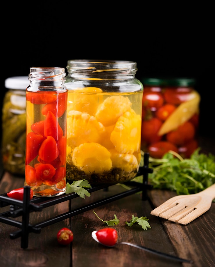 - Перед заливкой рассола в банки со специями добавляем уксус.