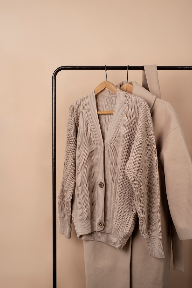 Свитер оверсайз с высоким горлом в бежевом или карамельном цвете станет прекрасным выбором. Для создания многослойных комплектов понадобится свободная рубашка из плотной теплой ткани, предпочтительно в клетку или полоску. Важно уделить внимание пуговицам – они должны гармонировать с тканью или быть изготовлены из материала, похожего на металл.