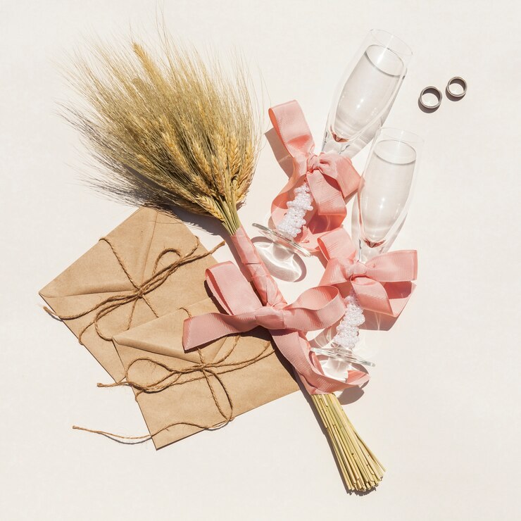 - При выборе оттенка стоит отдавать предпочтение тому, который гармонично впишется в цветовую палитру классической свадьбы: белого, черного и серого. Это облегчит поиск декоративных элементов, таких как бонбоньерки, ленты для оформления мебели и салфетки.